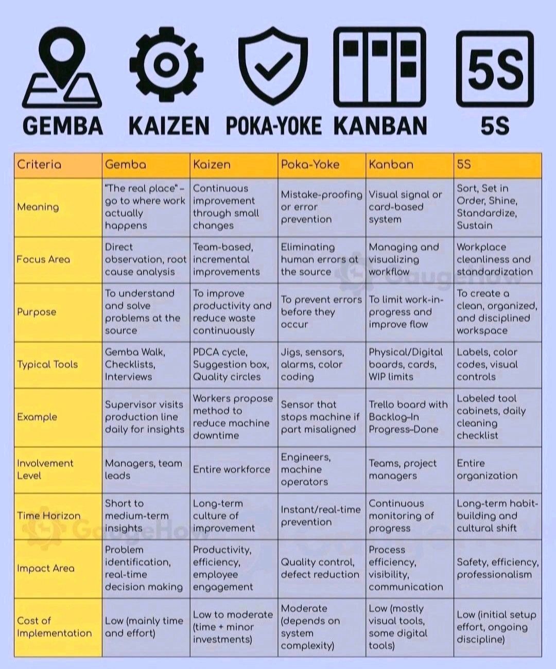 Categories Definition/Abbreviation GEMBA/KAIZEN/POKA-YOKE/KANBAN/5S Post author By admin Post date November 26, 2025 No Comments on GEMBA/KAIZEN/POKA-YOKE/KANBAN/5S GEMBA Vs KAIZEN Vs POKA-YOKE Vs KANBAN Vs 5S ← PHARMA ABBREVIATIONS- Part-1 → Types of Titrations Leave a Reply Cancel replyYour email address will not be published. Required fields are marked *Comment * Name * Email * Website Save my name, email, and website in this browser for the next time I comment.