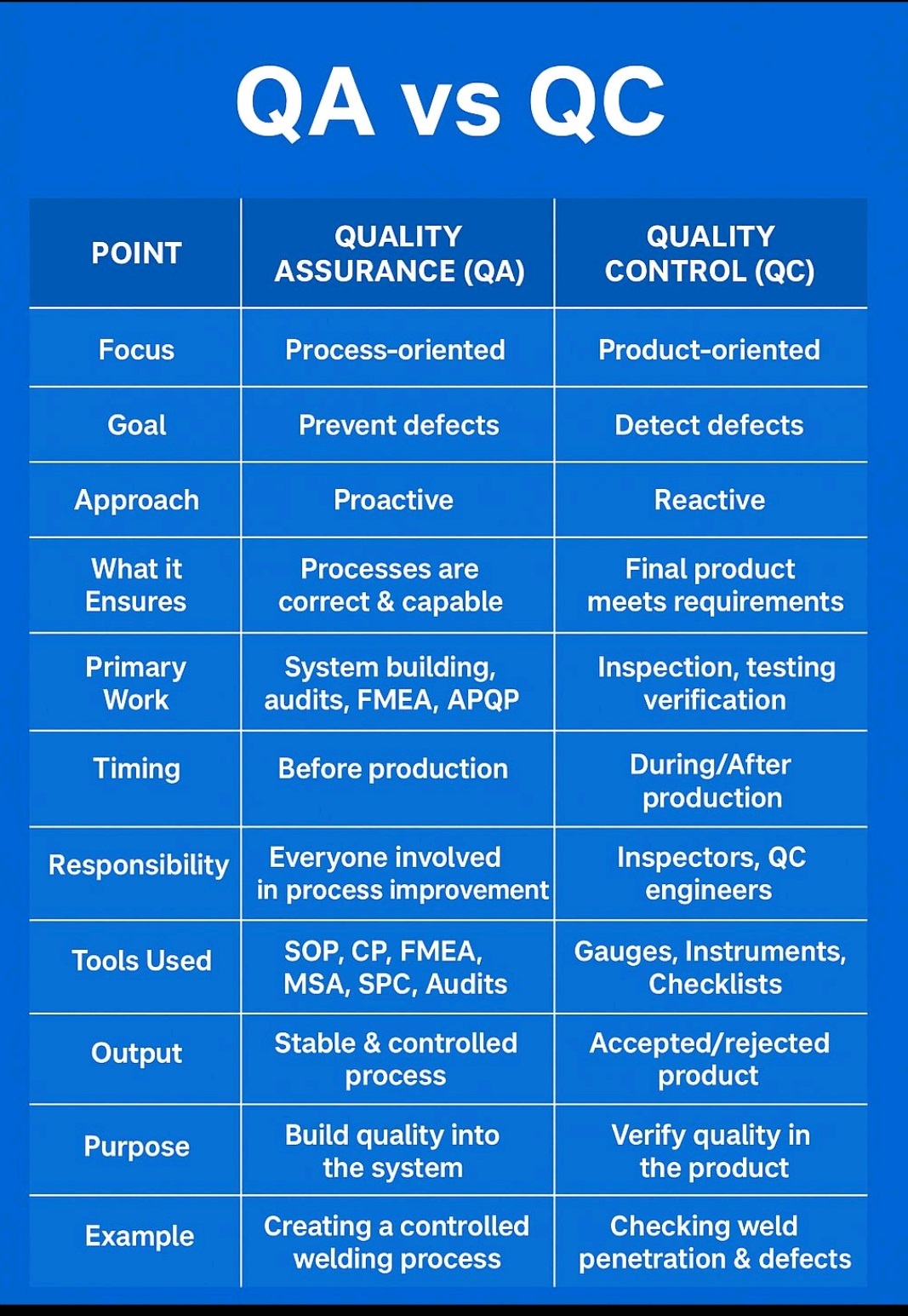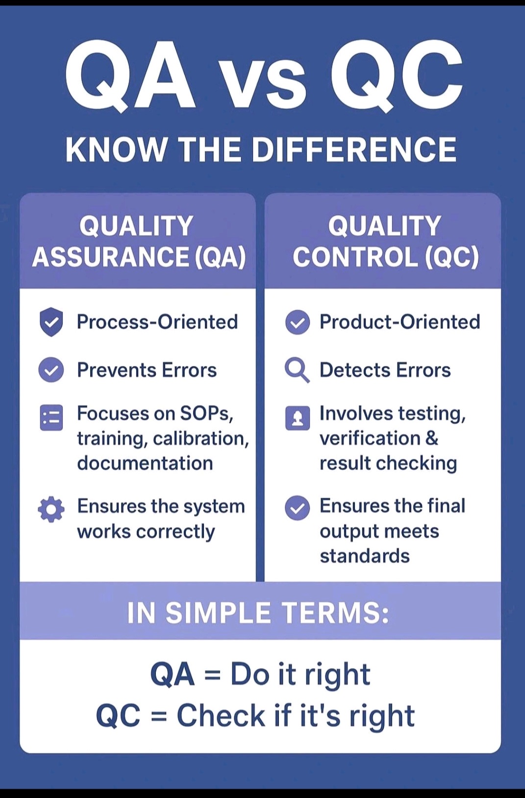 Categories Definition/Abbreviation Role of QA vs QC Post author By admin Post date November 27, 2025 No Comments on Role of QA vs QC Role of QA vs QC Quality Assurance vs Quality Control ← GMP vs GLP vs GCP → Poka-Yoke (Mistake Proofing) Leave a Reply Cancel replyYour email address will not be published. Required fields are marked *Comment * Name * Email * Website Save my name, email, and website in this browser for the next time I comment.