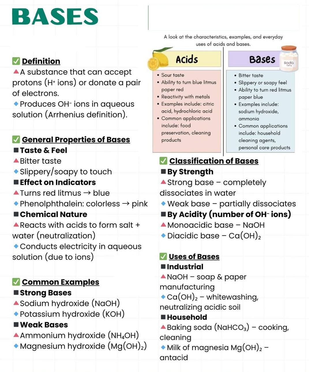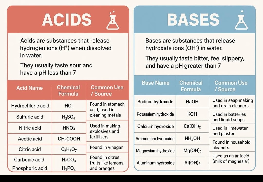 Acid-Hydrochloric acid: HCl, Nitric acid: HNO3, Sulfuric acid: H2SO4
