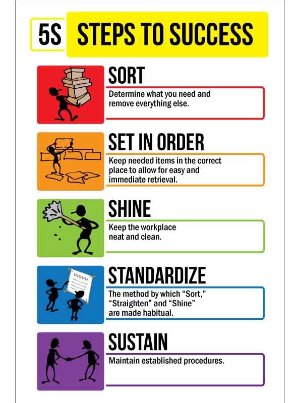 2. Set in Order (Seiton): Arrange necessary items so they are easy to find, use, and return, with a designated place for everything (e.g., “a place for everything, and everything in its place”).