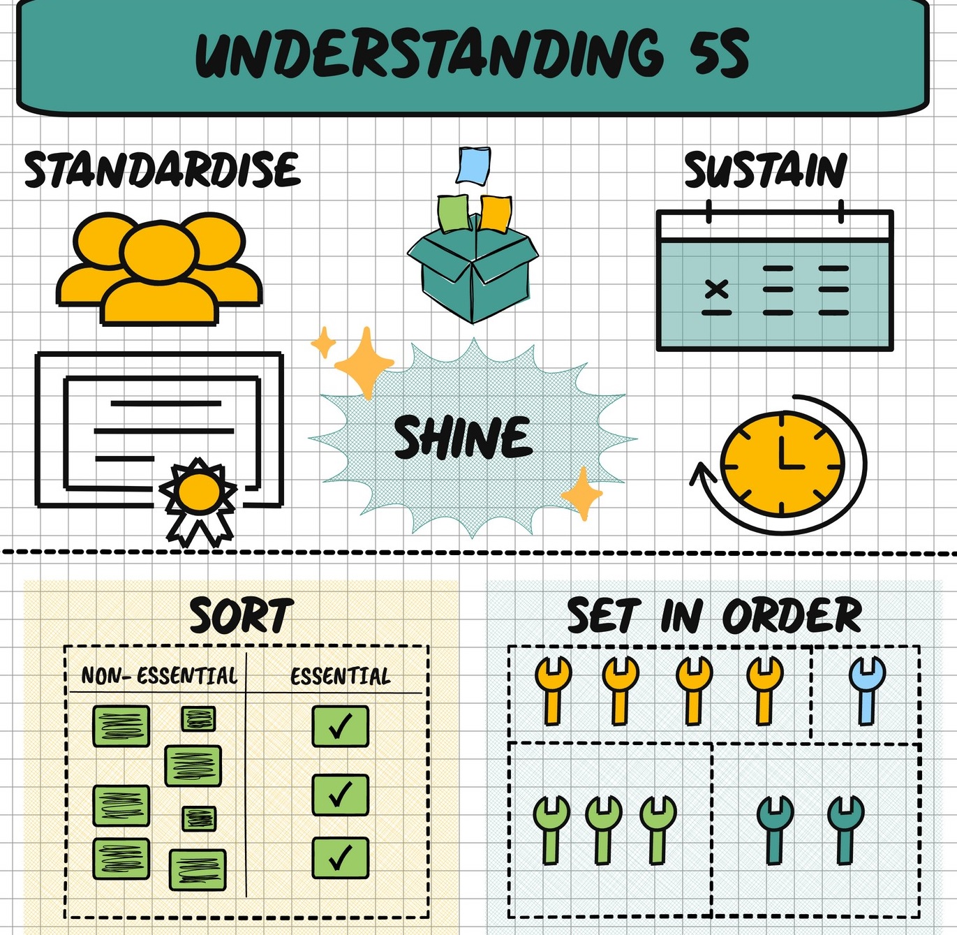 4. Standardize (Seiketsu): Create procedures, checklists, and schedules to ensure the first three Ss (Sort, Set in Order, Shine) are consistently followed.