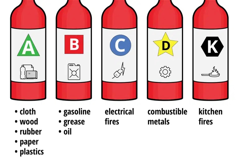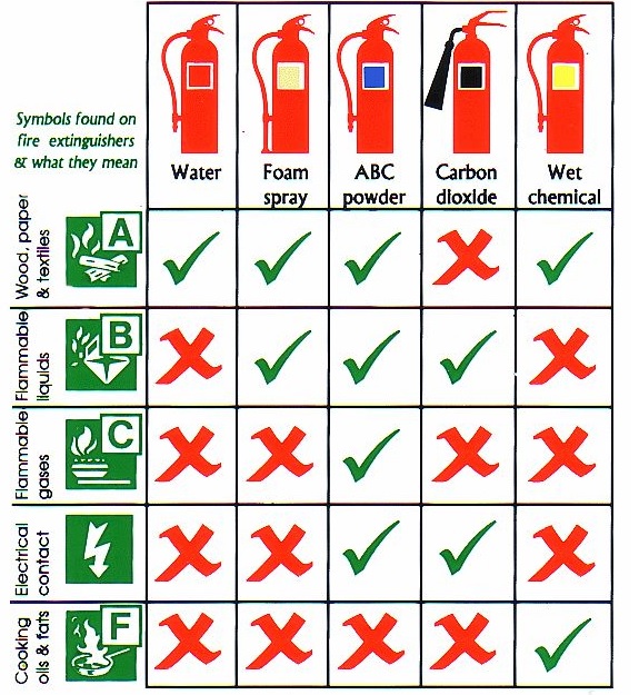 Class A: fire extinguisher – water, water mist, foam, dry powder, wet chemical.