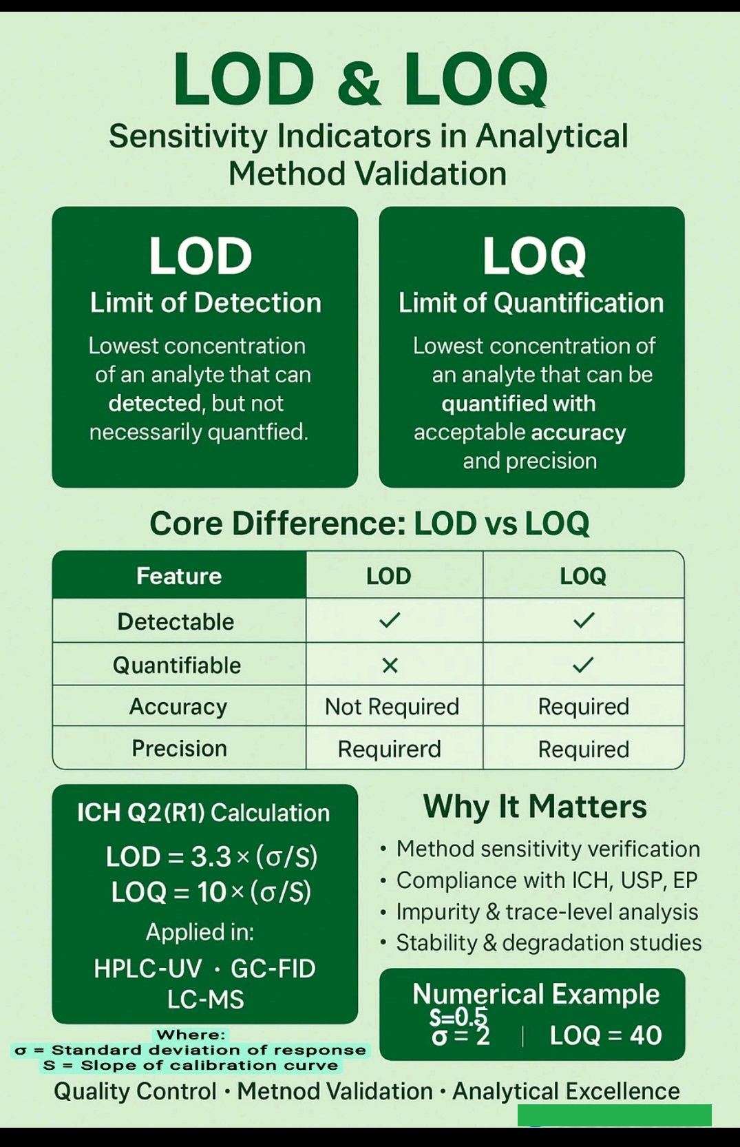 Categories Definition/Abbreviation LOD vs LOQ Post author By admin Post date December 13, 2025 No Comments on LOD vs LOQ LOD vs LOQ Method Validation, Limit of Detection, Limit of Quantification, Signal to Noise ratio. ← KAIZEN Explain → LOD Oven vs Moisture Analyser Leave a Reply Cancel replyYour email address will not be published. Required fields are marked *Comment * Name * Email * Website Save my name, email, and website in this browser for the next time I comment.